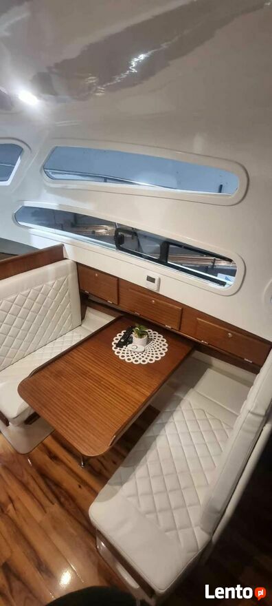 Laminat wykonany ręcznie, światło nawigacyjne, 4 głośniki zewnętrzne,4 półkosze dziobowe, 2 półkosze rufowe, ogrzewanie Eebsprecher, solary 900Watt, akumulatory hotelowe 460Ah ładowane z solarów i wtyczek portowych, gorąca woda Truma na gaz, otwierany luk w sekcji dziobowej, ster strumieniowy ,tapicerka robiona na zamówienie w wewnątrz i na zewnątrz oraz materac do opalania , nowe bimini z przyciemnianymi szybami,uchwyty na wędki, silnik Merkury 20KW, telewizor 32" drugi telewizor na rufie 21" , radio Sony , Echo sonda Loranse, toaleta elektryczna